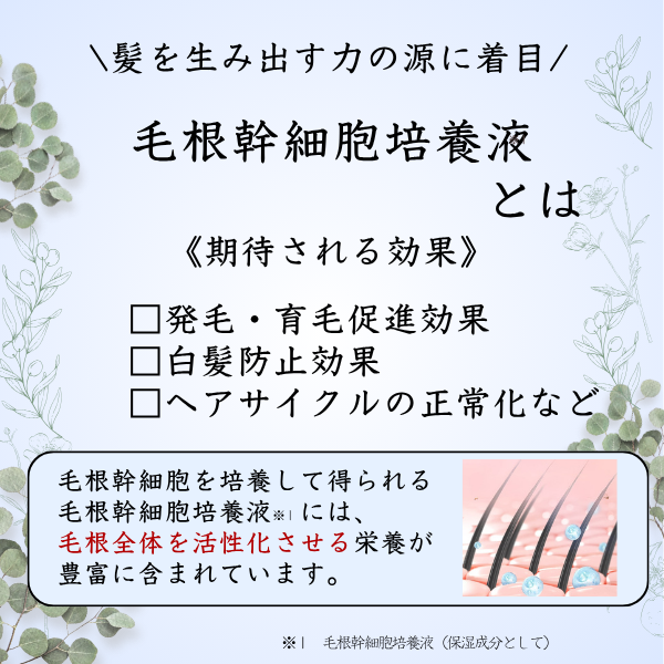頭皮に着目した『毛根幹細胞培養液』配合。