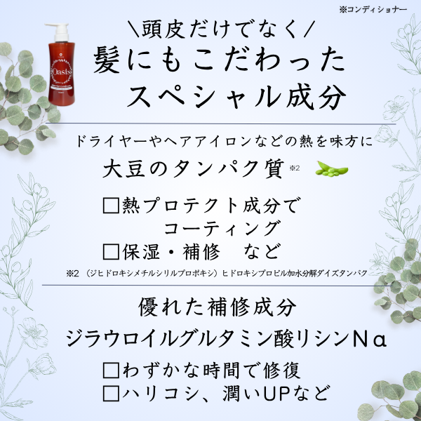 さらに、頭皮にも髪にもこだわった成分を贅沢配合。